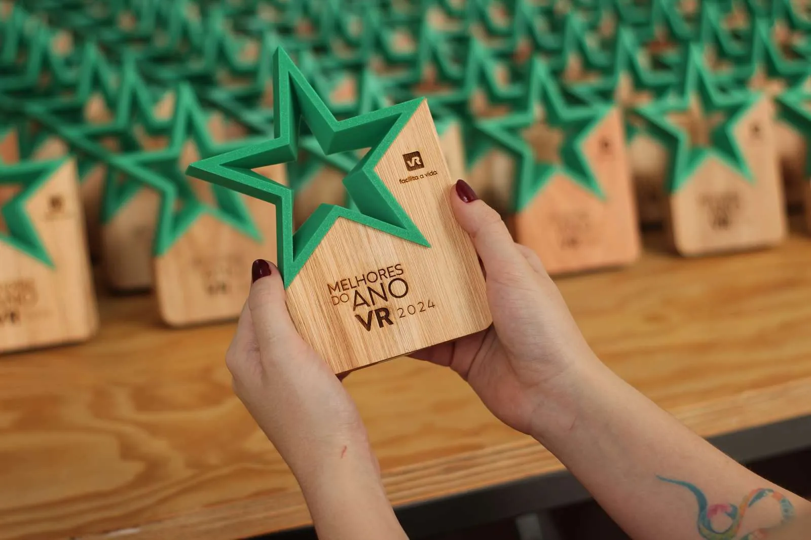 O Troféu Destaque é uma peça elegante e simbólica, criada para homenagear profissionais que se destacam por sua performance e atitude. Com uma estrela em 3D sobre base de madeira reflorestada, gravada a laser, essa peça une design moderno e propósito, comunicando reconhecimento com sofisticação.