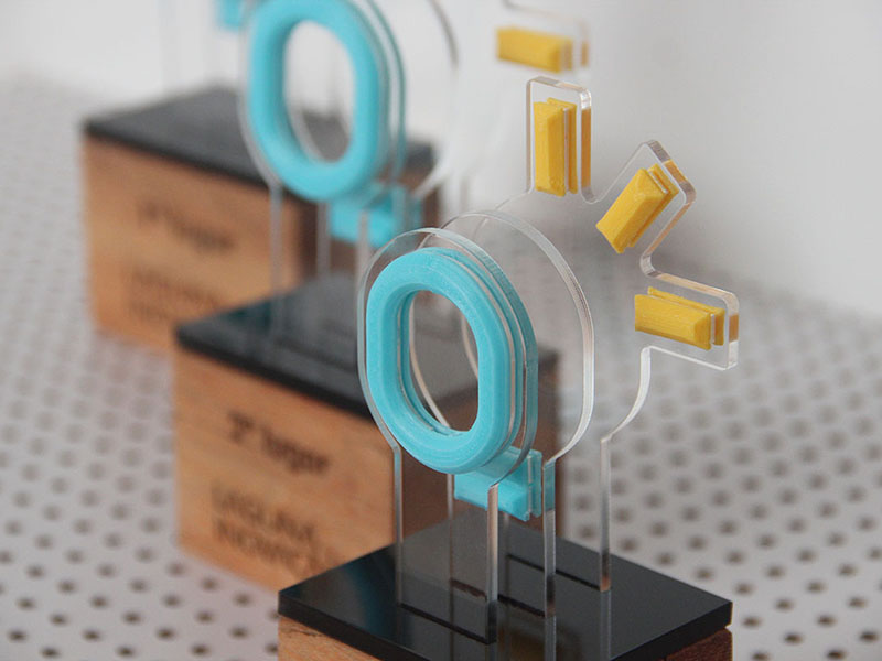 Troféu desenvolvido para premiação do projeto interno “Laguna Inovação”, da Construtora Laguna. O resultado foi um troféu dinâmico, criativo e inovador, acompanhando a proposta do evento.